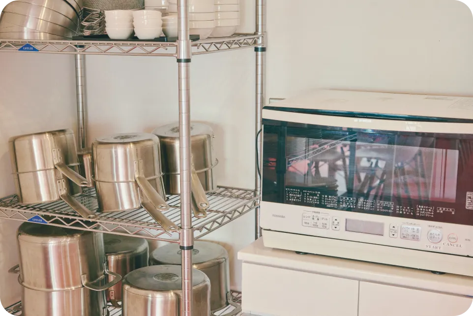 - 2F共用キッチンにございます。ご自由にお部屋にお持ちくださいませ。